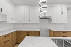 3 level 1/2 duplex with above ground 1 bedroom suite! Main floor enjoys Primary bedroom with walk-in closet and tiled ensuite, modern kitchen with sleek flat panel cabinetry, quartz countertops, centre island, spacious great room area with stunning fireplace! Top floor provides 2 bedrooms , full bathroom and laundry. Basement is fully finished with bedroom, bathroom, laundry, kitchen and living room! 2 car garage , heat pump, long life metal roof, better choice than a townhome with no bylaws, rules or strata fees, call today!