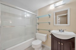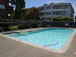 Tastefully updated 956 sf 2-bdrm unit. Well managed “Dorchester Circle”. Walk to Minoru Park, Rmd Centre & schools. Newer kitchen with eating area, maple cabinets & S/S appliances. Laminated wood flooring + tiled kitchen & bath floors. Designer paint. Master Bdrm has walk-thru closets (9.5’ hanging space) to full ensuite bath. 86 sf S-facing balcony with park-like view. Complex has heated O/D pool, hot-tub, sauna & equipped gym. 1 secured parking underbuilding + 1 locker. Cat & rental friendly (min 30-day rentals).
