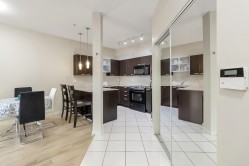 D'Cor - In the heart of the city centre. Across from the new library, city hall and few minutes from skytrain, Rec. Ctr, SFU and shopping, T&T market. Spacious 1 bed 1 bath ground floor unit with huge living room & covered patio, very functional plan, granite counters and enough storage, new laminate floor and fresh paint, Concrete between floors, 9ft ceilings. The building has gym, club house, pool, tennis table. Best price/ sft for first time buyer to move in or property to invest. Well maintained strata & no major work anticipated soon. This location is unbeatable. Excellent walk score of 89/100 and transit score of 90/100. Making car unnecessary.