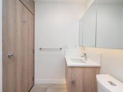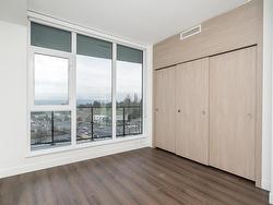 Modern Living at The Grand on King George. Stylish 1-bedroom + den, 1-bathroom condo on the 8th floor with 567 sqft of open living space and a 93 sqft balcony. Features include custom millwork doors, illuminated closet organizers, CENTRAL HEATING & COOLING, Wi-Fi-enabled Samsung appliances, GAS cooktops (included in strata fees), and efficient kitchen cabinet organizers. Enjoy 23,000 sqft of premium amenities: a private off-leash skypark, state-of-the-art fitness centre, VR room, outdoor BBQ and park area, playground, and 24/7 concierge. Conveniently located above five floors of commercial space with coffee shops, medical offices, and daycare at your doorstep. Less than 5 minutes’ walking distance from Gateway Skytrain Station, schools, and easy access to Highway 1.