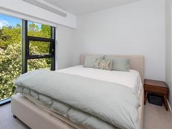 Welcome to The Wade—a sophisticated, 2021-built low-rise steel and concrete building that combines modern design with lasting quality. This top-floor corner unit offers over 750 sqft. of bright, thoughtfully designed living space with large windows & serene park views. Open-concept layout features a gourmet kitchen with quartz countertops, stainless steel appliances including a gas cooktop, two toned full-height modern cabinetry & large island with an eating bar—perfect for entertaining. Primary bedroom includes walk-in closet and ensuite with heated tile floor. Additional highlights include in-suite laundry, second full bathroom with heated tile floors, private balcony with a gas BBQ hookup and abundant natural light throughout. Enjoy access to a stunning rooftop terrace with sweeping city views plus your own garden plot and private peaceful courtyard. Well run strata welcomes 2 dogs (any size) with access to secure underground parking, separate storage locker & bike room.