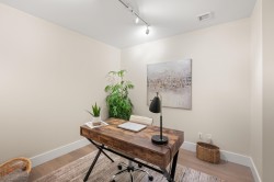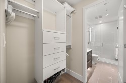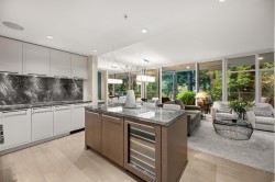 THE BEVERLEY! This home exudes grace & class. Luxury 2-bedroom plus den condo with attention to detail that will impress the most discerning Buyer. Spacious gourmet kitchen features dramatic marble backsplash, large island, deluxe cabinets & top of the line professional-grade integrated appliances (6 burner gas cooktop & wine fridge). Sleek updated fireplace. The generous primary fits a king-sized bed & joins a spa-inspired ensuite. The second bedroom also has its own ensuite. Expansive 228 sq ft balcony, outdoor heaters & full laundry room complete this home. Two side/side parking stalls with EV charger. Beautifully maintained unit in a desirable concrete building with amenities galore. Indoor pool, hot tub, steam, sauna, gym, guest suite & concierge. Live close to everything!