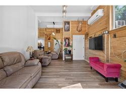 Are you looking for a quiet and very private place, with no neighbours in sight? You've found it. A magnificent property on the banks of a stream, just five minutes from town. Two separate floors; one bedroom, living room, bathroom, kitchen, and dining room, plus a balcony on the upper floor, and two bedrooms, living room, kitchen-dining room, bathroom with separate entrance on the lower level, offering excellent rental income or Airbnb potential. The interior is tastefully finished and with lots of light coming from the large windows, beautiful flooring and large rooms. Ideal location for fishing, boating, kayaking, and ice skating in winter. Fifty-foot storage building with garage door and separated by approximately twenty feet from a campsite with wood stove, air conditioning with electricity, and an additional 30' x 12' shed for storage. Abundant wildlife and beautiful scenery across the river.