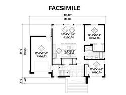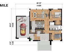 This warm urban-style house will charm you with the originality of its facade. This model measures 48 feet wide by 34 feet deep, with a living area of 1,158 square feet. The house features an entrance hall with a closet, a bathroom equipped with a shower and bathtub, two bedrooms, and an open area that shares the living room, dining room, and kitchen, complete with a large island and pantry. The buyer can choose finishes and request alterations to the design.