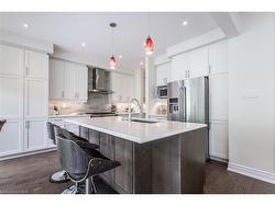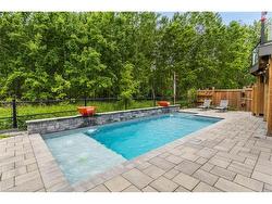 Welcome to your dream home in Brampton West! This stunning 4-bedroom, 3.5-bath residence sits on an oversized lot backing onto the lush Credit Valley Conservation area, where modern elegance meets natural serenity. A beautifully landscaped front yard leads to a covered porch and upgraded entryway. Inside, wide plank engineered hardwood floors flow throughout the main and upper levels, while oversized windows fill the open-concept great room and gourmet kitchen with natural light. The chef-inspired kitchen features beige shaker cabinetry, a designer tile backsplash, quartz countertops, a large island with breakfast bar, a butler’s pantry, and top-of-the-line appliances. Oversized patio doors open to a composite deck with glass railings, perfect for relaxing evenings by the fire table while enjoying tranquil greenspace views. Upstairs, the primary suite is a true retreat with a custom walk-in closet and a spa-like ensuite featuring heated floors, a glass-enclosed tiled shower, a freestanding jacuzzi tub, a double Carrara marble vanity, and a private water closet. Two bedrooms share a stylish Jack and Jill bath, while the fourth includes its own ensuite. The walk-out lower level with Dri-Core subfloor awaits your personal touch and opens to a covered patio overlooking a spectacular 12x27 saltwater pool with waterfall bowls, a Sunshelf, and custom LED lighting—ideal for summer days or starry nights. Every detail of this home reflects refined craftsmanship and thoughtful design. Nestled in one of Brampton’s most desirable neighborhoods, it offers easy access to top-rated schools, parks, golf, and more. This is more than a home—it’s a lifestyle. Picture summer BBQs on the deck, cozy nights by the fireplace, and unforgettable family moments by the pool. Don’t miss your chance to make this extraordinary property your forever home. Explore the digital brochure to discover all the exceptional upgrades and luxury features that make it truly remarkable.
