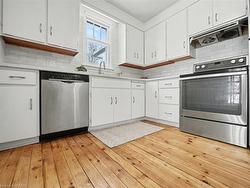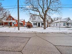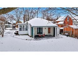 This charming two-bedroom plus den (or potential third bedroom) home in Brantford beautifully blends historic character with modern comfort. Featuring hardwood floors throughout, a freshly painted interior, a remodeled bathroom, and an updated kitchen with new quartz countertops, the home is both stylish and move-in ready. French doors open from the kitchen to a covered rear patio, creating an inviting space for outdoor dining and entertaining.The bright den provides the perfect spot to relax, while a cozy natural wood-burning fireplace in the living room adds warmth and character.The home offers an updated electrical panel and wiring, forced-air heating, and central air conditioning. All five appliances are included.The unfinished basement provides ample storage and a dedicated laundry area. Situated on a private 51 × 115 ft lot, the property features established gardens and a secure 5 × 8 ft storage shed.Conveniently located near Brantford General Hospital, shopping, banks, schools, and Highway 403, this home offers excellent accessibility for a wide range of buyers, including professionals and healthcare workers who value proximity to major employment hubs and everyday amenities.The lot size and desirable location also present incredible investment upside in a high-demand core area.Clean, freshly painted, and full of character, this home is an excellent opportunity for first-time buyers, downsizers, or investors alike—combining charm, modern updates, and long-term potential in a highly desirable location.