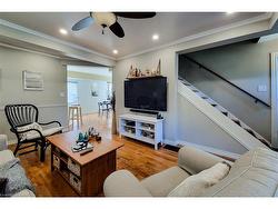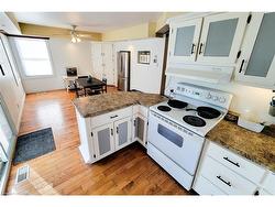 Welcome to this charming 1.5 storey, 2-bedroom detached home located in a quiet, family-friendly neighbourhood. Beautifully maintained and updated over the past eight years, this home features numerous improvements including roof, windows, and furnace, plus a brand new hot water heater. Enjoy a completely carpet-free interior with a warm and inviting layout.The main floor offers a spacious living room filled with natural light, along with a large eat-in kitchen that provides ample cupboard and storage space, a separate dining area, and a convenient walk-out to the back deck-perfect for entertaining. A 4pc bathroom and main-floor laundry add to the home's functionality.Upstairs, you'll find two comfortable bedrooms, ideal for families, guests, or a home office setup.Step outside to a fully fenced backyard featuring a wood deck, patio, and storage shed, offering plenty of space to relax and enjoy the outdoors. The private driveway accommodates parking for two vehicles.Located close to schools, parks, trails, and all major amenities, this home blends comfort, convenience, and modern updates-an excellent opportunity for first-time buyers, downsizers, or anyone looking for a move-in-ready home.