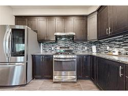 Luxury Meets Function in this home with Private Green views! This 5-bedroom, 2706 sq. ft. home combines style, comfort, and functionality, all backing onto mature greenery for privacy and peace. The main floor includes a versatile bedroom with access to a full bathroom beside the mudroom, ideal for guests, in-laws, or an office. At the heart of the home, the chef’s kitchen shines with stainless steel appliances, upgraded cabinetry, granite counters, large center island, modern light fixtures, pot lights, backsplash, under cabinet lighting, and upgraded ceramic floors. It opens to the family and dining areas with a walkout to a deck overlooking the trees. The living room features hardwood floors and a gas fireplace, adding warmth and character. Upstairs, the large primary suite offers a walk-in closet and ensuite with double granite vanity, while three additional spacious bedrooms share a full bath. A convenient upper level laundry completes the space. The 1310 sq. ft. unfinished walkout basement with large windows, cold room, bathroom rough-in, and sump pump is ready for your creative vision—whether an income suite, recreation area, or extended family living. With 9 ft ceilings, hardwood staircase and upper hall, upgraded tiles, double garage, and a walkout setting onto green space, this home is move-in ready with endless potential. Forget the Hype, Feel the Buzz, This home is for you!