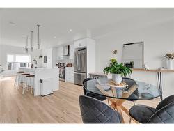 Experience exceptional living in this modern, luxury stacked townhouse in Guelph's highly desirable South End, offering over 1,541 sq. ft. of contemporary comfort and thoughtfully designed living space. The open-concept main floor features an upgraded eat-in kitchen with premium stainless steel appliances, abundant cabinetry, an expansive island, and a brand-new water softener, complemented by a bright living and dining area, a convenient 2-piece bathroom, and direct access to a large private balcony ideal for relaxation or entertaining. The upper level includes three sizeable bedrooms, a full 4-piece bathroom, and a luxurious primary suite complete with a walk-in closet and its own 4-piece ensuite, as well as a new stacked washer and dryer for added convenience. Perfectly located steps from grocery stores, schools, banks, LCBO, restaurants, a movie theatre, and on a direct bus route to the University of Guelph, this home offers unmatched walkable convenience. One parking space is included, with the option to rent an additional spot if required, making this an exceptional opportunity for modern, low-maintenance living in one of Guelph's most sought-after neighbourhoods.