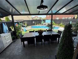 Stunning Home on a Prime West Mountain Court – A True Oasis!Welcome to this exceptional property nestled on a quiet court in the highly sought-afterWest Mountain area. From the moment you arrive, you’re greeted by a grand double-doorentry, soaring 2-storey foyer, elegant chandelier, oak staircase with wrought ironspindles, and gleaming 24”x24” tiles.The main level features a seamless open-concept layout with a spacious dining and familyroom adorned by a modern fireplace. The gourmet kitchen is a showstopper—complete withbuilt-in stainless-steel appliances presently professionally wrapped in white vinyl(including a water line for the fridge), gas stovetop, crown molding, quartz countertopsand backsplash, oversized island, pot lights. Sliding doors lead to a breathtaking,fully fenced backyard that radiates a Caribbean resort-style vibe.Upstairs, you’ll find a luxurious primary suite that includes a walk-in closet and aspa-like ensuite with double vanity, soaker tub, and separate shower. Along with threegenerously sized bedrooms—two with walk-in closets and a completely renovated five piecebathroom. This home is completely carpet-free for easy maintenance and a modern feel.The beautifully finished in-law suite in the basement offers its own eat-in kitchenette,stylish 4-piece bath, two bedrooms, and a cozy family room with fireplace—perfect forextended family or rental potential.The exterior is finished in an elegant combination of stucco, stone, and brick. Stepoutside to your personal paradise: an inground heated saltwater pool, hot tub, stainlesssteel outdoor kitchen with gas BBQ under a covered patio, space for a 12-seat diningtable, cozy lounge area, and a dedicated gas fire pit zone for evening gatherings.Room Sizes are Approximate. Realtor is one of the Sellers.