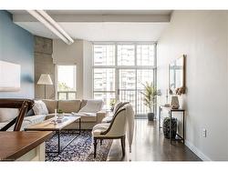 Experience urban chic living at the Core Lofts! This super cool condo boasts a modern industrial vibe with polished concrete floors, soaring 10+ft ceilings with exposed pipes and beams, glass bock accents and floor-to-ceiling windows for a ton of natural light. This 834 sqft unit features 1 bedroom plus a den that can also serve as a home office or an additional bedroom, a 4pc bath, convenient in-suite laundry and an open-concept living and dining area. The kitchen features stainless steel appliances with ample cupboards and storage and the spacious open living area is perfect for entertaining with a Juliette balcony to enjoy west-facing sunset views. Residents enjoy premium building amenities, including a gym, party room, guest suites, and rooftop patio with BBQ perfect for taking in breathtaking city skyline views. The unit include an underground parking spot and convenient lockers on 8th-floor. This sought-after building in a prime downtown location is close to St. Joseph, McMaster and all area hospitals + the David Braley Medicine Centre making it ideal for medical professionals. Within walking distance to the new TD Coliseum, the Convention Centre, the Downtown Core, restaurants, shopping and amenities, Art Gallery of Hamilton, Central Library, Farmers’ Market and just minutes to trendy Locke St S. Public transit direct to McMaster University, Go-transit, and easy access to the 403 make this cool and convenient condo at the Core Lofts the perfect choice to call home! RSA