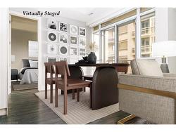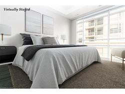 This premium urban residence on the sunny southeast corner redefines luxury living. Imagine waking each day where two generous sized balconies unveil unbeatable views that seamlessly blend the vibrant energy of the city skyline with the serene, natural beauty of the distant escarpment. Floor-to-ceiling windows bathe the entire unit in an abundance of natural light, illuminating a meticulously designed, carpet-free, modern interior. The open-concept layout masterfully blends living and entertaining spaces. Culinary adventures await in a sleek, contemporary kitchen. The generous sized primary bedroom, complete with a luxurious full ensuite, promises a private retreat from the urban bustle. An additional spacious bedroom and a secondary three-piece bathroom offer versatile accommodation. In-suite laundry adds a layer of convenience that speaks to modern sensibilities. And when the desire for fresh air calls, those two open balconies transform into your private, serene outdoor havens – perfect for morning coffee or a quiet evening cocktail. The luxury extends far beyond your front door. Residents are invited to indulge in an array of world-class amenities designed to enrich every aspect of life. Stay active in the state-of-the-art gym, unwind in the shimmering indoor pool, or host unforgettable events in the sophisticated party room. The inviting BBQ courtyard offers a social hub for creating cherished memories with friends and neighbours. Location is everything. Step outside and find yourself immersed in the heart of the city's cultural pulse. World-class art galleries, unparalleled shopping, gourmet dining, prestigious theatres, and vibrant entertainment along with the library and public transportation are equally accessible. Experience the very best of city living in a premium setting, where unparalleled views, sophisticated design, abundant amenities, and an unbeatable central location converge to create your ultimate urban sanctuary.