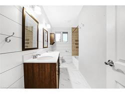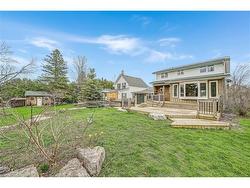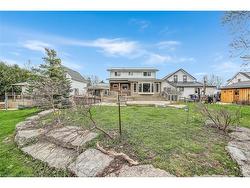 Charming detached home in a family-friendly neighborhood situated on a generous 57X203ft well maintained lot surrounded by mature trees. Covered spacious porch ideal for morning coffee. Bright foyer entry into family eat-in kitchen w/ chef's W/I pantry. Open front living & dining area designed for growing family. Naturally lit sunroom perfect for plant lovers. Separate cozy family room w/ fireplace walk-thru past the laundry & 2-pc powder room into the mudroom w/ B/I storage W/O to the rear deck. Upper level finished with 4 principal beds & 5-pc bath. Full finished bsmt including spacious rec entertainment space w/ fireplace, bedroom, 3-pc bath, utility space, & huge coldroom/ cantina can be used as an in-law suite or guest accommodation. Entertainer's backyard w/ gorgeous landscaping including large deck w/ B/I bar top & Hot Tub. Book your private showing now!