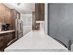 Check out this beautifully renovated 2-bedroom condo with convenient in-suite laundry - perfect for first-time buyers, downsizers, or investors. The unit features a full 4-piece bathroom and a rough-in for a future 2-piece bath. With low property taxes and affordable condo fees that include heat and hydro, this home offers exceptional value. The open-concept layout showcases upgraded flooring, quartz countertops, designer light fixtures, and a modern kitchen that flows seamlessly into the spacious living and dining areas. Step out onto your private balcony to relax and unwind. The bathroom has been tastefully remodeled, and the impressive primary bedroom offers double closets for optimal storage. A same-floor storage locker provides additional space, and a dedicated parking spot is included for your convenience. Located in the heart of Kitchener, this turnkey home offers easy access to highways, shopping, and all amenities - an incredible opportunity you won’t want to miss!