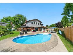 Welcome to luxurious 7078 Rosseau Place, a rare 3+1 bedroom, 2 bath raised bungalow tucked away on a quiet cul-de-sac in Niagara Falls. With 2,624 square feet of living space, this home blends elegance, comfort, and functionality. Step inside to a sun-filled family room, flowing seamlessly into a formal dining area highlighted by wood-beamed ceilings and a striking glass-paned railing. The chef’s kitchen offers stainless steel appliances, granite countertops, a center island, and abundant cabinetry, opening to a warm living room with a gas fireplace. Upstairs, three spacious bedrooms and a spa-inspired bath with soaker tub create a peaceful retreat. The lower level is an entertainer’s dream, featuring a rec room with fireplace, an additional bedroom with large windows and walkout access, a stylish 3-piece bath, and a sunroom that opens directly to the backyard oasis. Outside, enjoy summers around the saltwater heated pool, private lounging, and hosting gatherings in a space designed for relaxation. A rare find in a sought-after location, this home offers both luxury and lifestyle.