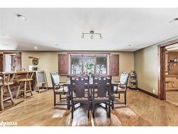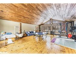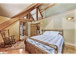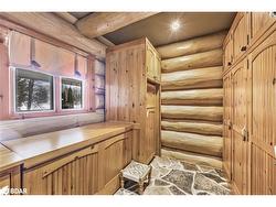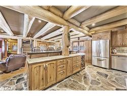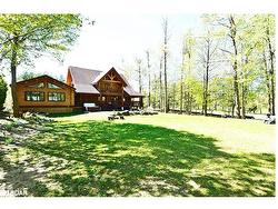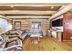 Welcome to 118 Highland Drive, Oro-Medonte. Discover the charm and craftsmanship of this stunning log home in the heart of Horseshoe Valley. Featured in the movie The Christmas Chronicles starring Kurt Russell, this home radiates warmth and comfort, complemented by award-winning landscaping and a breathtaking 3-tier pond a tranquil highlight of the property. Step inside to a spacious foyer with tile flooring which leads into a cozy yet expansive rec room with rich hardwood floors. This level also features a beautiful wet bar, a comfortable bedroom, and a 4-piece bathroom, ideal for entertaining or hosting guests.The open-concept main floor is designed for modern living. The kitchen dazzles with granite countertops, stainless steel appliances, and a breakfast bar, flowing effortlessly into the dining and living room. A walk-in pantry with a built-in freezer and second fridge provides exceptional storage, while a stylish powder room completes this level.The second floor offers two generously sized bedrooms, each with its own ensuite. The primary suite boasts a walkout to a private balcony overlooking the backyard and includes a convenient laundry area. A bright office space and soaring cathedral ceilings with wood beams enhance the airy ambiance of the home.The heated garage, complete with an entertainment room above, blends utility with style. Outdoor living is equally impressive, with multiple walkouts to covered porches, including a wrap-around porch and private balconiesperfect for soaking in the peaceful surroundings. You will love the cleanliness and efficiency of the water radiators and in-floor heating, ensuring consistent warmth and a clean, comfortable atmosphere throughout.Situated just one minute from Vetta Nordic Spa, five minutes from Horseshoe Valley Resort, and close to Craighurst amenities and major highways, this property offers a harmonious blend of natural beauty and unmatched convenience.