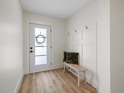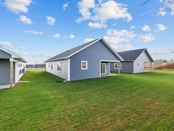 Photos & video are facsimile - new photos coming soon - Welcome to 87 Samantha Lane nestled in Cornwall's newest subdivision, Scottsview Meadows. This home is located on a quiet, private street with sidewalks, perfect for walks & enjoying the neighbourhood. Boasting 1,466 sq. ft. of comfortable slab living, this 3-bedroom, 2-bathroom home includes a 1.5-car heated garage with epoxy flooring & garage window for natural light. The front entry greets you with a double-paved driveway, stone walkways, & covered front veranda. Inside, you'll find a nice entry complete with accent coat hook wall and seamlessly connecting the garage access, as well as a convenient coat closet. The open-concept living space features floor-to-ceiling custom kitchen cabinets, full pantry, backsplash, quartz countertops, and a large kitchen island and under-mounted kitchen sink facing a sun-filled window. New stainless steel appliances complete this chef’s kitchen. The kitchen and dining area flows seamlessly into the living room, which boasts a tray ceiling with recessed lightning throughout and an oversized triple-door slider patio beaming in natural sunlight that opens onto a beautiful stone covered veranda patio and private quiet backyard. The tucked-away large primary bedroom offers a walk-in closet and an ensuite bath with custom cabinetry, double sinks, and a walk-in shower with black custom shower door and shower taps. Off the primary suite is a separate laundry room with shelves and a linen closet for added convenience. The two additional guest bedrooms are spacious, each with double closets, and the main guest bath includes a window to let in natural light. Additional features include vinyl plank flooring through out, ample windows for natural sunlight, epoxy garage flooring, floor-to-ceiling kitchen cabinetry, tray ceiling, stone walkways and patio, wide accent trim and window casings and a Lux Home Warranty for peace of mind.